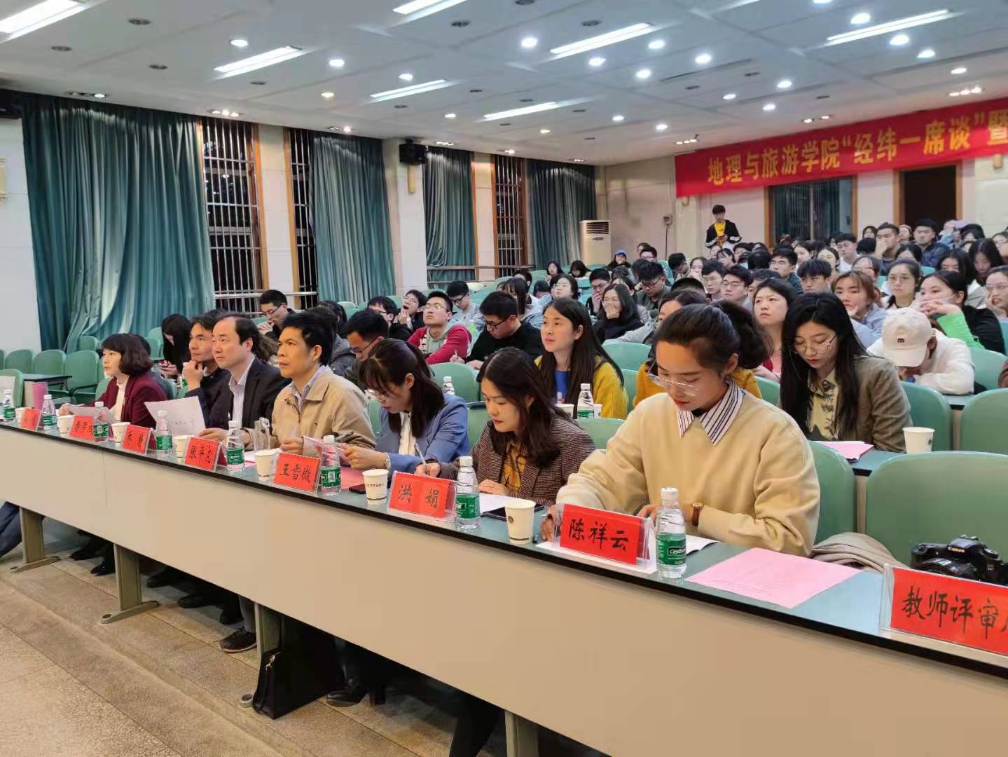 第十七届“地旅之星”十佳大学生暨“自强之星”评选汇报会在地旅学院实验楼101报告厅举行。地旅学院党委副书记乔静,地理科学专业教授张平究,土地资源管理专业负责人费罗成,城乡规划专业副主任王雪微,酒店管理专业教师吴悦,旅游管理专业教师洪娟,地理信息科学专业教师姜伟,地旅学院团委书记陈祥云,以及全体辅导员出席活动并担任评委。此外,参与本次活动的还有由学院各班级学生代表、团委学生会骨干代表等组成的40人“评审团”学生代表,以及来自各班级的学生观众代表。