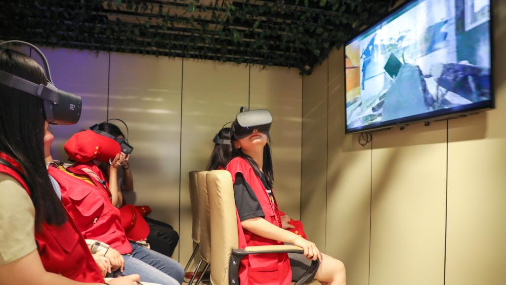 5月9日上午,志愿者们在工作人员的的带领下,进入科普馆,在公共安全教育馆的4D互动影院观看了教育微电影,互动影院现场有烟雾、模拟火焰、水汽等,体验非常逼真。微电影给同学们科普了地震的形成及地震发生时的状况;之后,志愿者进入地震小屋实景体验了居家时地震发生的真实情境,学习如何自救及紧急避险处理。在体验完毕后,场馆工作人员为志愿者们讲解了世界主要地震带的分布,安徽省内地震带分布情况,地球内部结构及地震形成的原因,模型模拟了地震横波、纵波的传播。随后,志愿者们还学习了解了不同种类的消防器材,参加了以VR技术为支撑的消防演练,体验学习了日常生活中可能遇到的危险及自救措施,如遇到车辆行驶过程中突发状况时的逃生措施,如何正确地给他人进行心肺复苏等。本次活动让志愿者们全面地认识到掌握逃生知识和学法守法的重要性,提升了防震避震技能和自救互救能力。