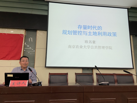 金刚)5月18日下午,南京农业大学公共管理学院博士生导师欧名豪教授应邀在学院实验楼101报告厅作了题为《存量时代的规划管控与土地利用政策》的学术讲座。学院相关专业教师和研究生、本科生聆听了此次报告。