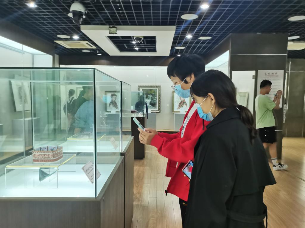 活动伊始,同学们有序进入展厅。在讲解员的带领下,大家依次参观陶瓷器展厅、美术画作展厅等,认真聆听讲解员对每件文物背后的相关历史知识的介绍。在参观文物的同时,赵佳慧向同学们科普相关的文物知识。同学们积极提问,认真学习,从一幅幅图片、一件件文物中了解历史、学习历史、感悟历史。