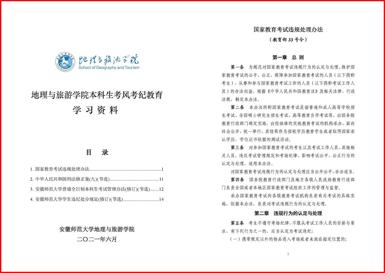 编订学习资料,宣传法律规定。为进一步提高学生对考风考纪相关法律法规的认识和了解,学院编辑整理国家教育考试违规处理办法、色情动漫