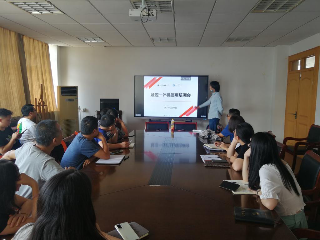 在院行政楼四楼会议室举行希沃交互智能平板触控一体机使用培训会。学院各教研室教师代表、各办公室秘书参加了培训会,会议由行政副院长汪文文主持。