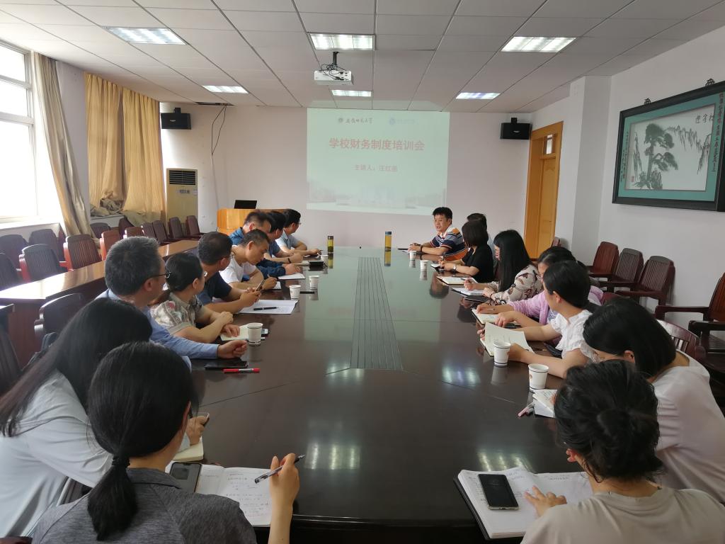 )为认真落实党风廉政建设责任制和师德师风建设,进一步加强财务管理和横向课题经费使用,学院邀请财务处副处长汪红第来学院进行财务制度培训。院长苏勤、行政副院长汪文文、院各办公室秘书、教师代表参加培训。培训由院长苏勤主持。
