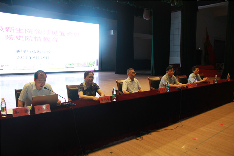 2021级新生与院领导见面会暨院史院情教育在花津大礼堂报告厅举行。学院党委书记贾冠忠、院长苏勤、党委副书记乔静、副院长方凤满、曹卫东及各专业新生辅导员出席此次活动。活动由乔静主持。