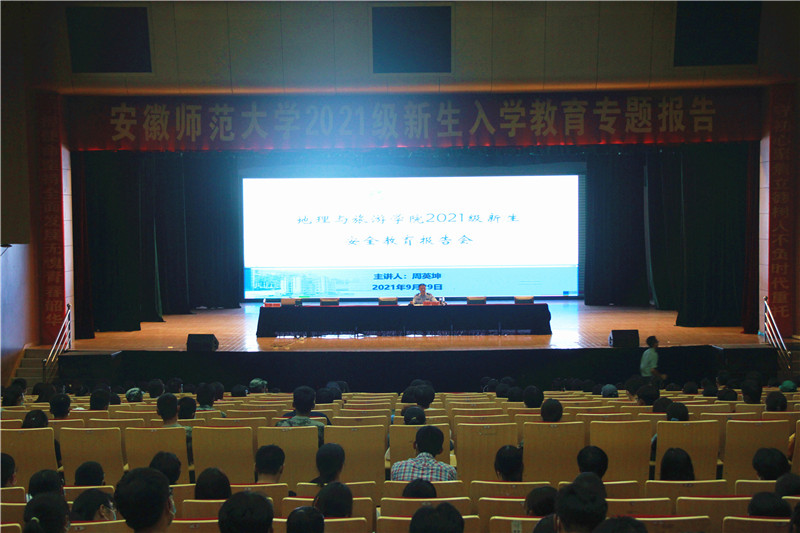 于9月29日晚在花津大礼堂开展了新生安全教育报告会,报告会由芜湖市高校园区派出所周英坤警官主讲。