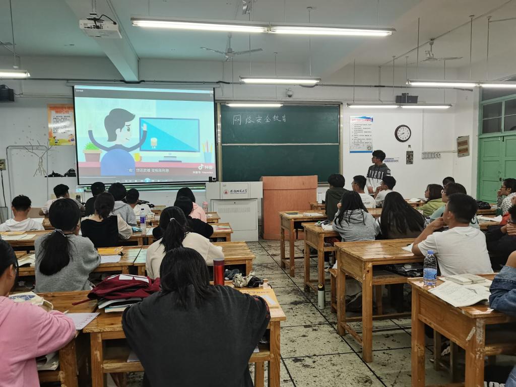 韦银艳 孔馨语)为了向全班同学普及网络安全相关知识,强化网络安全意识2021级城乡规划专业于2021年10月13日在行知楼召开网络安全教育主题活动,活动由安全委员皮宇萱主持,专业全体同学参加。