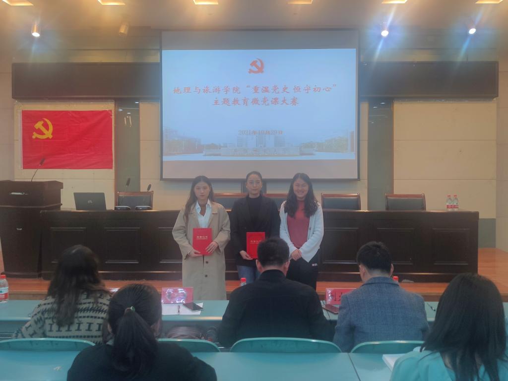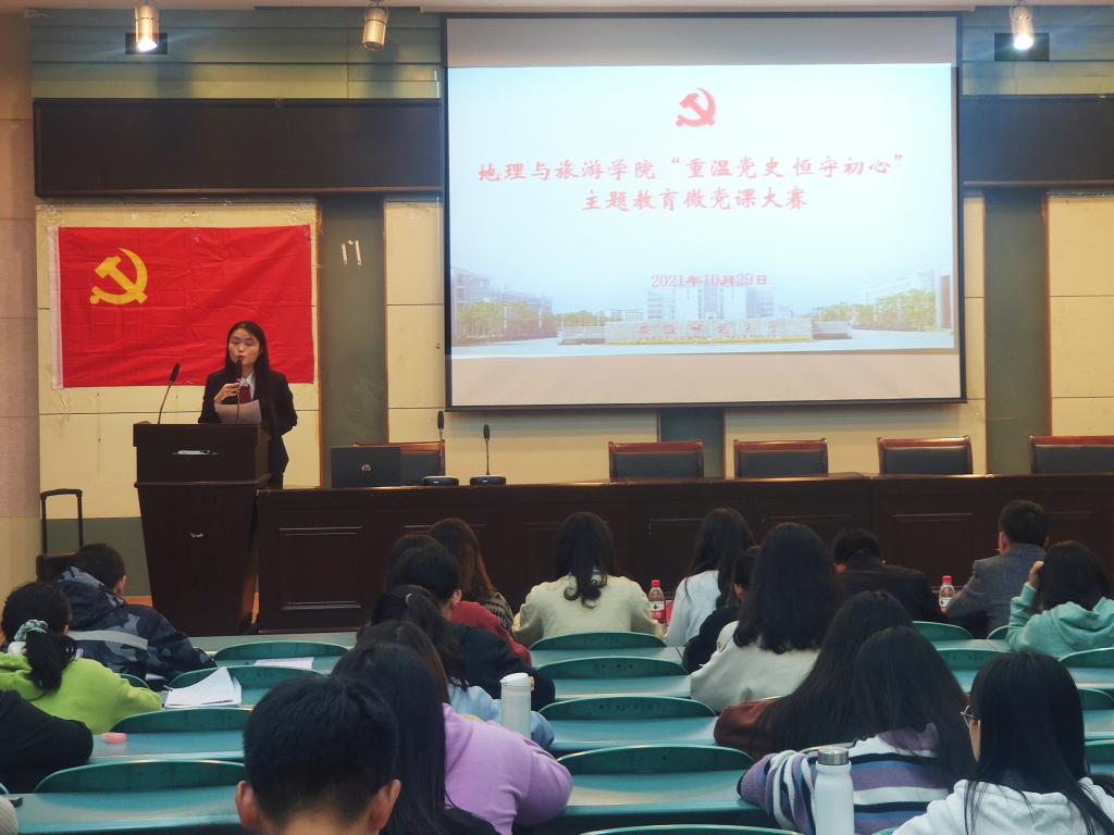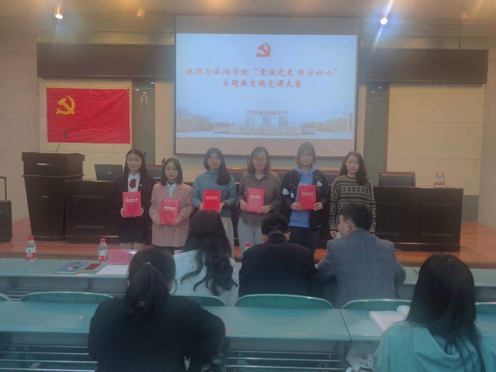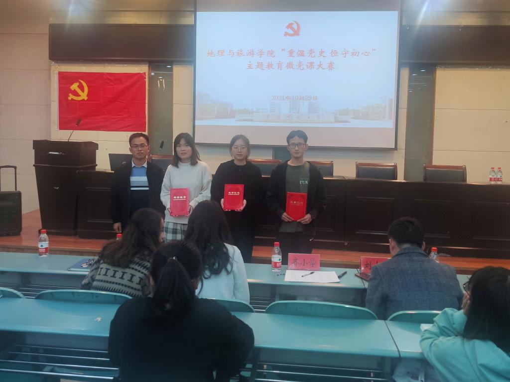“重温党史,恒守初心”党史学习教育微党课大赛在学院实验楼101报告厅举行,院党委秘书王美、本科生党支部书记代表齐小学、辅导员赵佳慧、刘少杰参加活动并担任评委,学院学生党员培训班和入党积极分子培训班代表现场观摩学习。