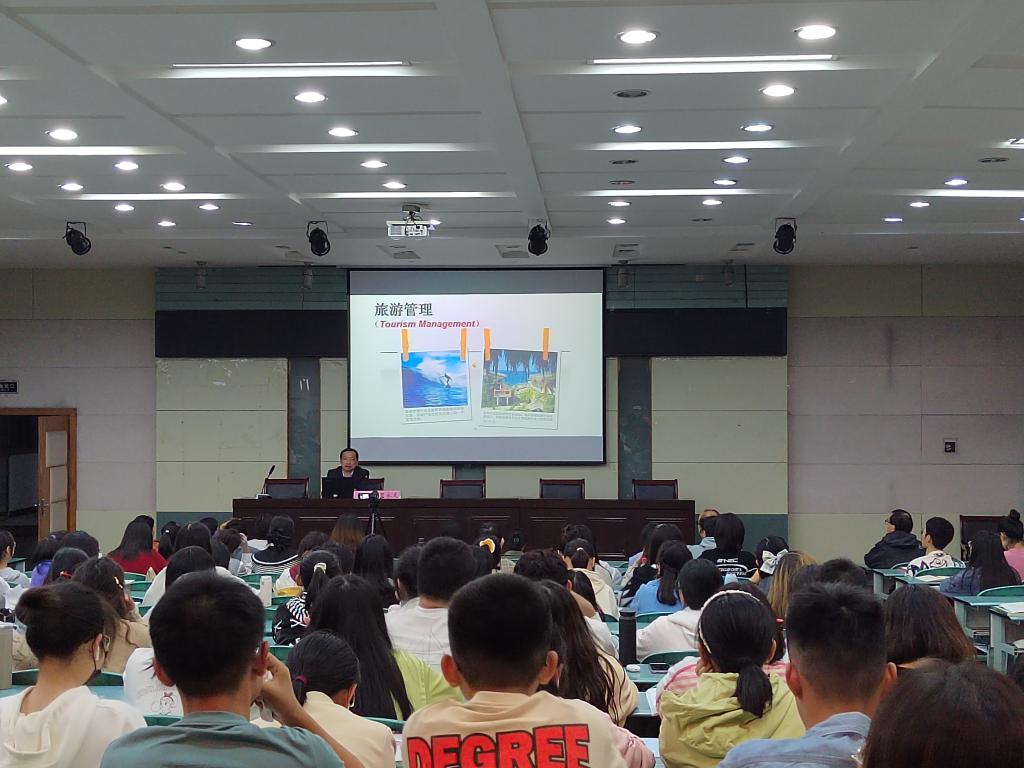 实验楼101报告厅,由旅游管理专业负责人杨钊主持。