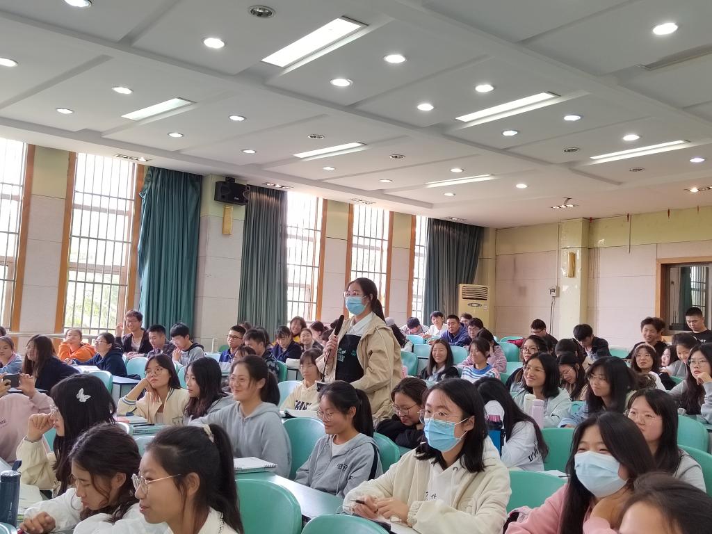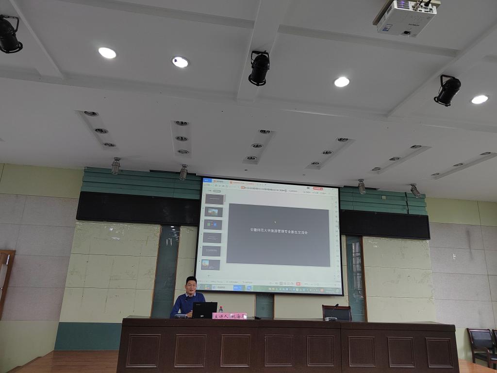 实验楼101报告厅,由旅游管理专业教师王莉主持。