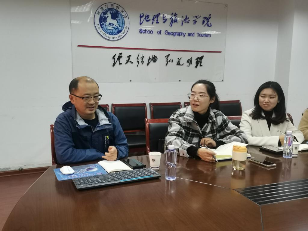 在学院行政楼四楼会议室举行辅导员素质能力提升计划暨“地旅学工沙龙”活动,邀请学校副处级辅导员宫超老师进行辅导员素质能力大赛专题培训指导,全体专兼职辅导员参加培训。培训由学院党委副书记乔静主持。