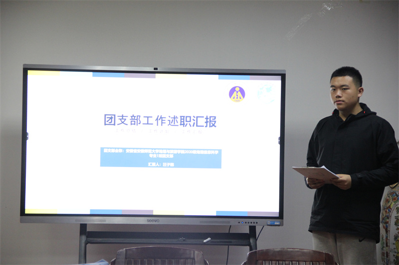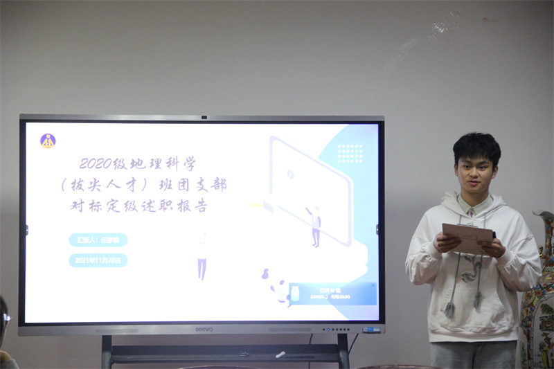 会议伊始,各团支部由团支书进行了“对标定级”述职汇报。2019级土地资源管理专业、2020级城乡规划专业和2019级地理科学师范2班采用视频形式进行汇报。其中,2020级土地资源管理专业团支书从“班级建设、团员建设、组织生活、制度落实、作用发挥”五个方面进行了汇报。2019级地理信息科学专业团支书就共青团员人数及构成等方面汇报了团员基本情况,展示了支部大会和团小组成员交流的照片。他阐述班级通过学习党的建设和党的十九届六中全会精神,开展了各类与时俱进的团日活动,体现了团小组建设的灵活性和多样性,还指出了工作中存在主要问题。2020级城乡规划专业团支部汇报中指出通过学习习近平总书记“七一”重要讲话精神,同学们紧跟时政热点,开展专题学习会,通过多种形式增加了同学们对党史学习教育的积极性和主动性,帮助同学们补充党史知识,团员管理有序,严格按程序发展团员,制度落实完善。此外,2018级各专业和2019级在外实习相关专业采取书面报告的形式进行汇报。
