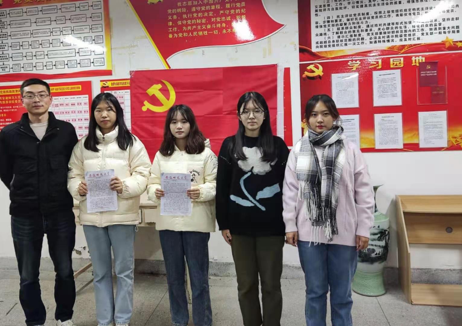据悉,自入学以来21级地理科学(师范)专业2班团支部策划开展一系列主题学习活动,不断引导鼓励同学们积极向党组织靠拢,如开展“请党放心,强国有我”团日活动、“习近平总书记在纪念辛亥革命一百一十周年大会重要讲话精神”专题学习会、“党课开讲啦”党课学习活动,学生骨干“微服务”志愿活动等。活动的开展,既是积极响应学院“五微五计划”学生党员教育培养工程的要求,同时也取得了较好的思想引领作用,进一步增进了同学们对党的认识,从而更加坚定了入党决心。