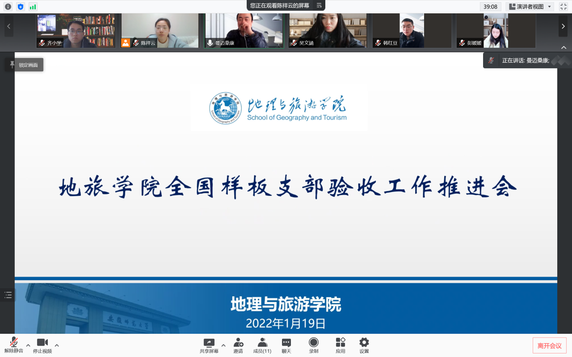 为统一思想、加强谋划、高效推进,确保旅游本科生党支部高质量高标准通过教育部验收。1月19日下午,学院在线上召开了全国样板支部验收推进会。