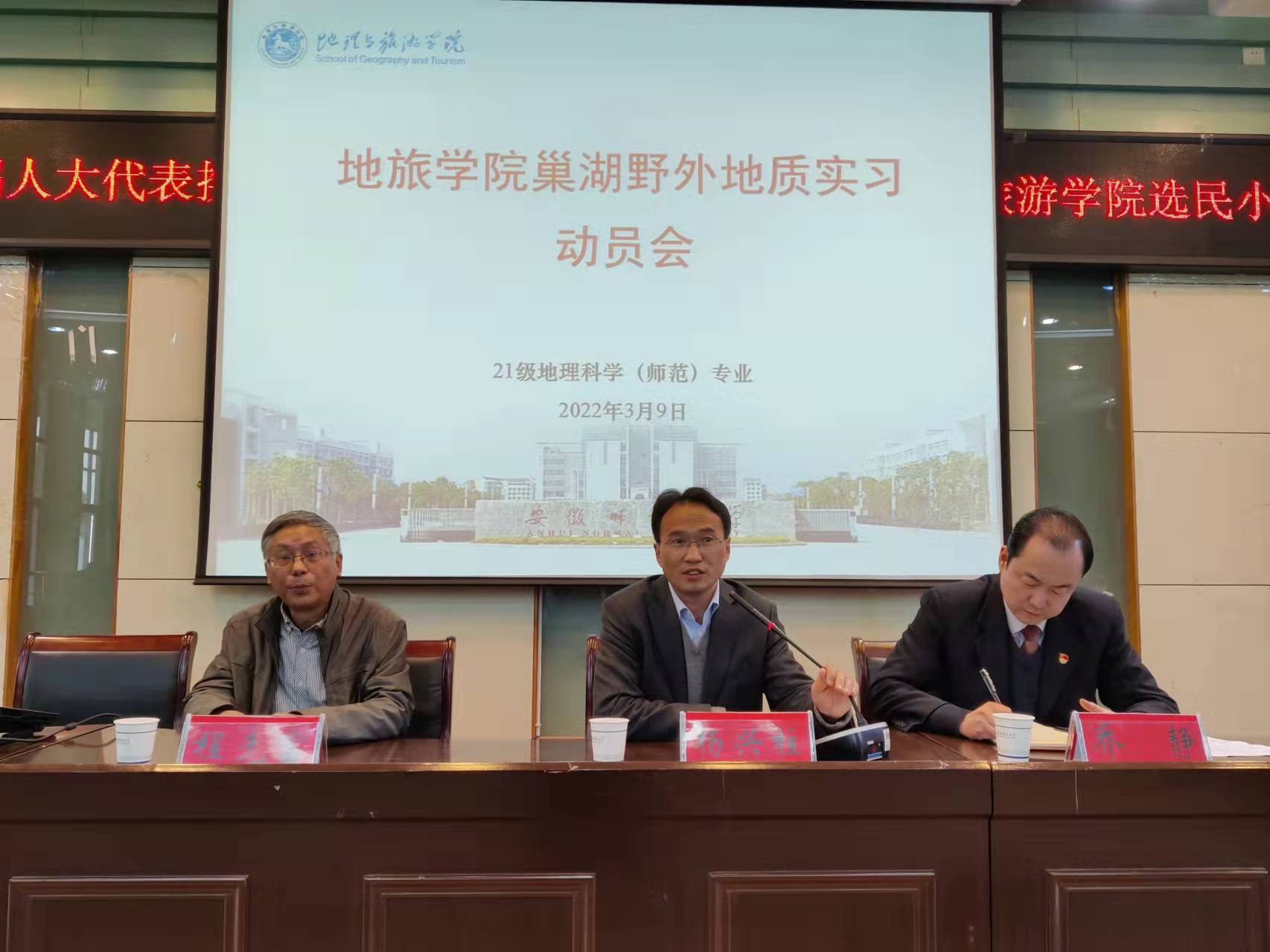 3月9日下午,巢湖野外地质实习动员会在学院实验楼101报告厅顺利召开。学院教学副院长杨兴柱、党委副书记乔静以及实习指导教师程先富、杨立辉、朱晓强等参加会议并做动员讲话。与会领导老师鼓励同学们在实习中多看、多听、多问、多思考、多实践,同时要强化安全意识严格遵守疫情防控要求,遵守实习期间考勤以及各项纪律要求,发扬团结互助、协作配合的精神,做坚韧不拔的地理人,充分展现师大学子的良好形象。