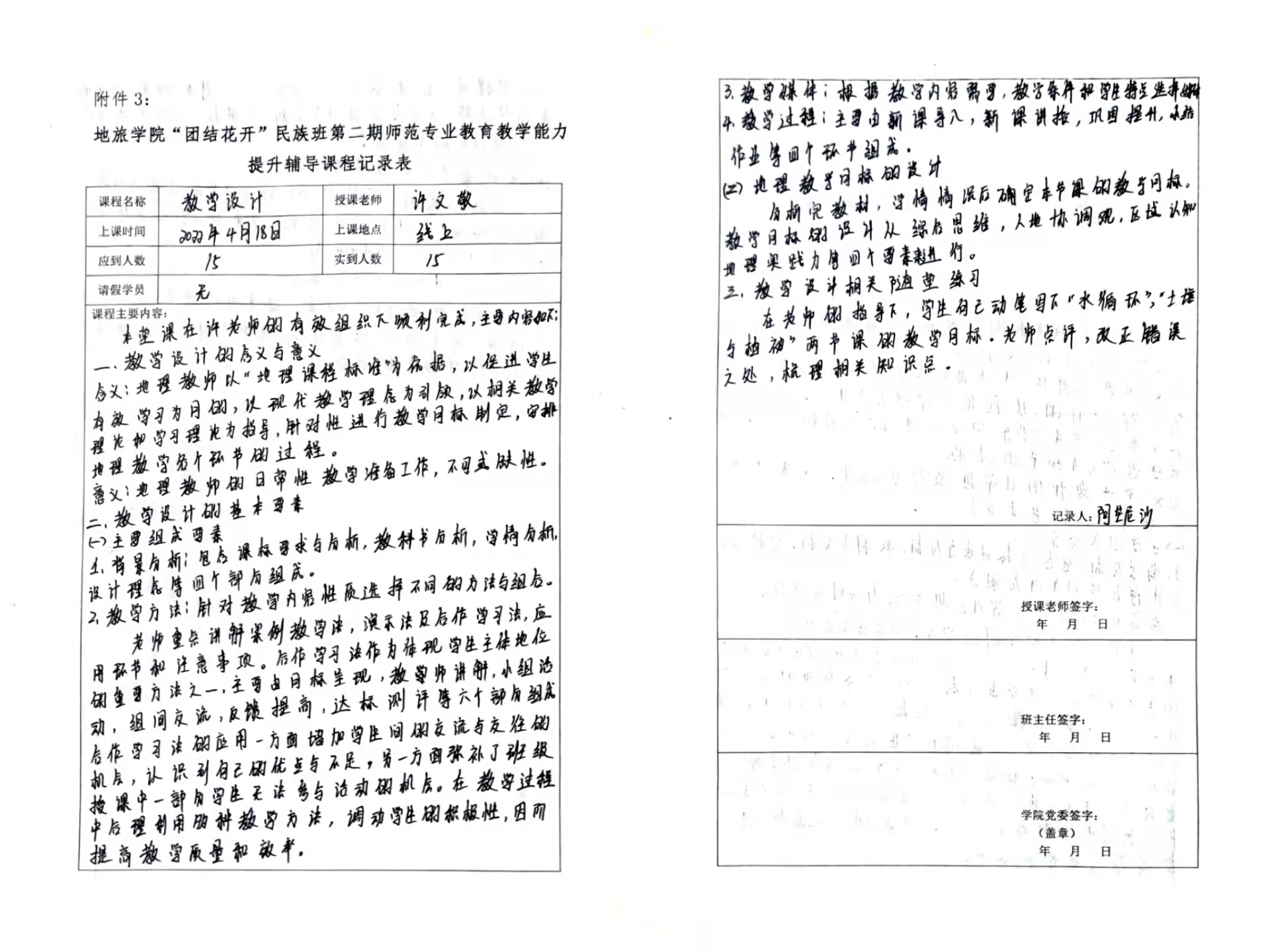 疫情就是命令,防控就是责任。4月17日凌晨四时起,芜湖市实施临时静态管理,为积极配合芜湖市及学校相关的防疫政策,暂停线下聚集性活动,学院采用线上线下相结合的授课方式,确保辅导培训课程正常进行。在线上课堂上,同学们认真听讲积极互动,及时向小导师提出疑问,小导师们对同学们的提问一一耐心解答,教学秩序稳定,课堂气氛十分活跃。课后学员们认真完成课堂笔记和课后作业,保持高效的学习效率,同学们工整的字迹、清晰的逻辑,每一份笔记都体现着少数民族学生认真、踏实的求学态度。疫情防控下线上教学能够有效率开展进行,充分体现了学院的高度重视和支持,此次参训学员们纷纷表示感受到学院对他们成长的关心,普遍感觉这次的培训收获很大。18级地理师范专业阿芒尼沙同学说:“作为一名维吾尔族师范生,非常感谢学院为我们举办这样一个提升师范生技能的辅导班,让我们有机会能够查漏补缺,为即将到来的教师资格证考试充电加油,我们也深深地感受到学校学院领导老师们对我们少数民族学生的关怀,希望通过这次辅导培训,我们能够顺利通过教师资格证考试,以后我们也想回到家乡为边疆地区基础教育事业做出贡献”。