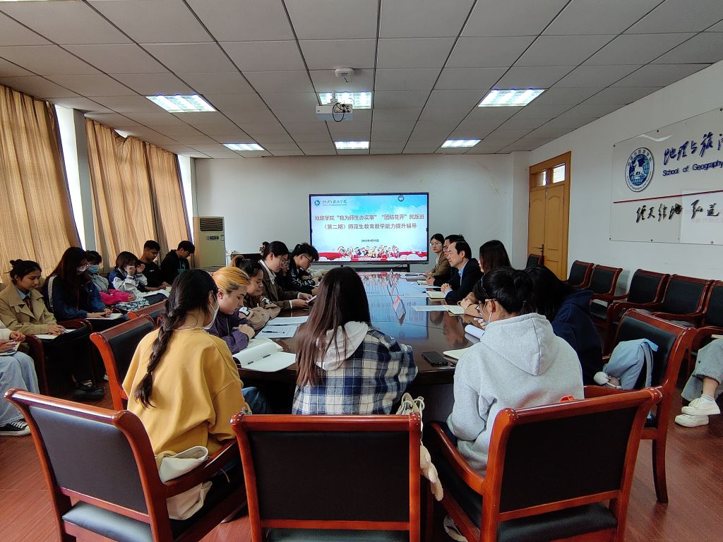 此次辅导班开设了自然地理、教学设计、笔试模拟、面试模拟四个专题的教学课程,为期三周,共计40课时。在正式开始培训前,学院多次召开提前摸排摸底会议、备课研讨会议、课程设计准备会议等,确保辅导班顺利开展。此次授课培训紧紧抓住理论教学和技能培训两方面,自然地理专题课程的设计注重理论教学,夯实同学们的专业知识基础,教学设计的培训,旨在提升同学们的师范生基本功,夯实从教技能,用扎实本领站稳三尺讲台。笔试、面试模拟课程则抓住同学们的实际需求,让学生提前适应教师资格证考试的答题规则,避免考生在考试时出现类似的错误,达到“以考促教”、“以考促学”的目的。4月26日上午,在学院三楼、四楼会议室分批举行了模拟面试,17位学员依次参加模拟面试,熟悉整体面试流程,小导师们对学员们进行一对一面试指导,学院党委副书记乔静、辅导员丁如栩全程参与模拟面试,并就同学们模拟面试中的表现予以点评指导,并勉励同学们树立自信,从容应考,充分发挥培训成效,以良好的精神面貌和扎实的知识技能在即将开展的教师资格证校内考试中创造好成绩。