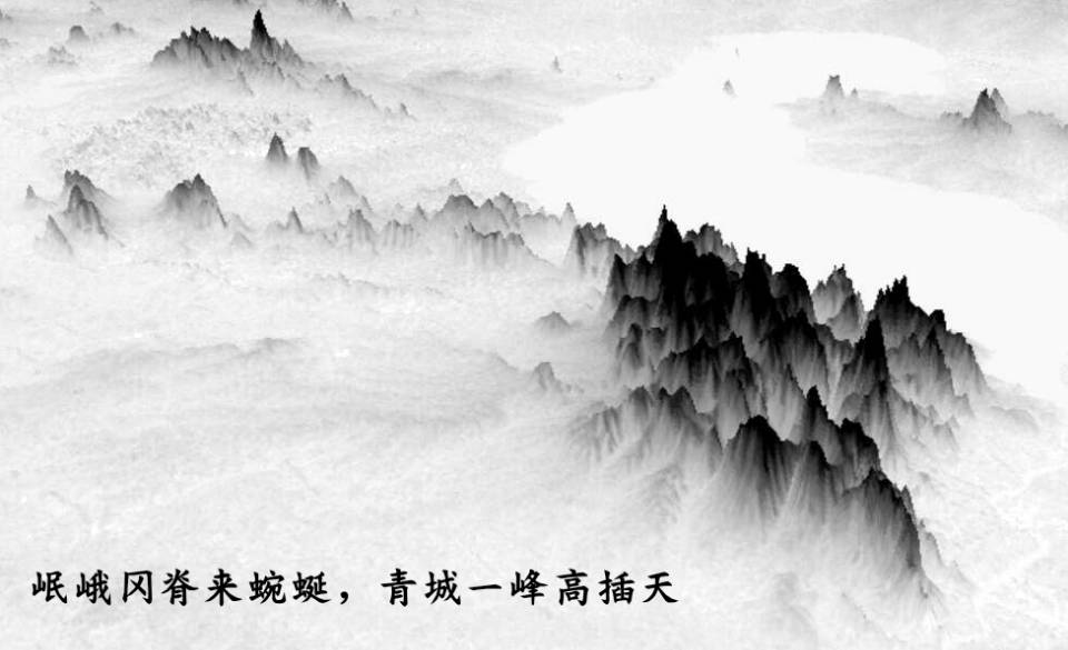 水墨山水画是中国文化的重要组成部分,通常以自然山川为主要对象,通过特定的观察角度,结合灵活的着色手法,描绘出拥有深厚感和层次感的壮阔山水景观。在GIS工具中,利用合适的高程数据,通过一定的渲染方式,就可以呈现中国传统水墨山水画中的笔墨感和立体感。