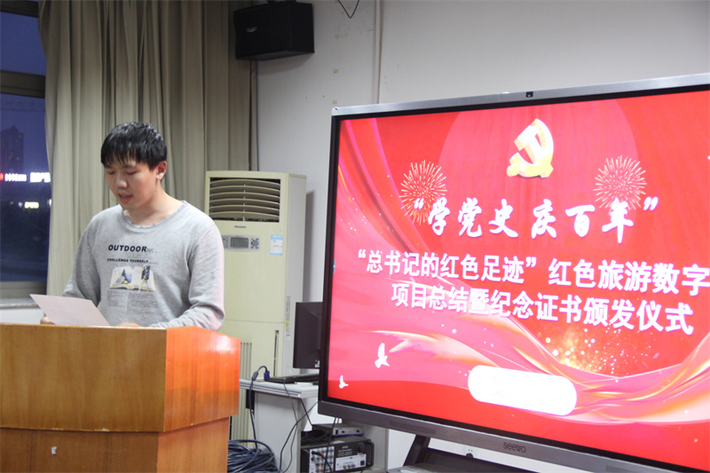 会上,陈祥云首先向与会人员介绍了“学党史,庆百年”“总书记的红色足迹”红色旅游数字地图项目开展基本情况。2018级旅游管理专业汪海洋同学就红色旅游数字地图的基本功能进行了展示。