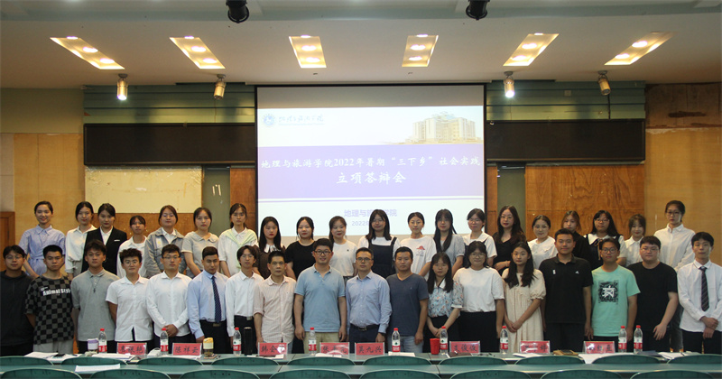 在院实验楼101教室举办2022年暑期社会实践立项答辩会。学院地理科学专业教授张平究、城乡规划专业副教授韩会然、土地资源管理专业副教授吴九兴,地理信息科学专业副教授支俊俊、旅游管理专业教师洪学婷、色情动漫