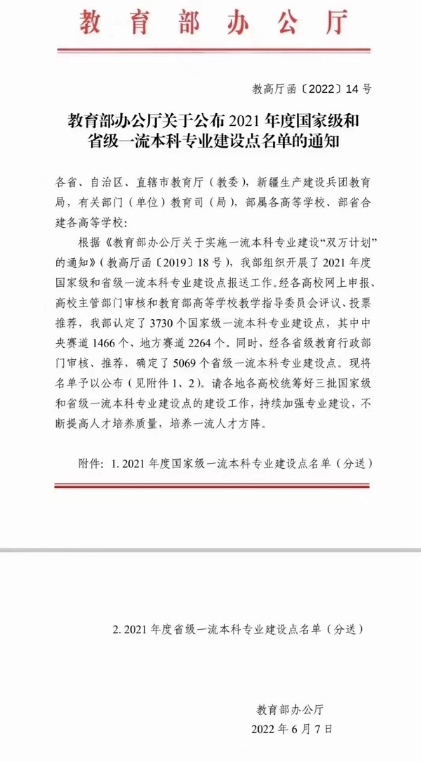 日前,《教育部办公厅关于公布2021年度国家级和省级一流本科专业建设点名单的通知》印发,色情动漫