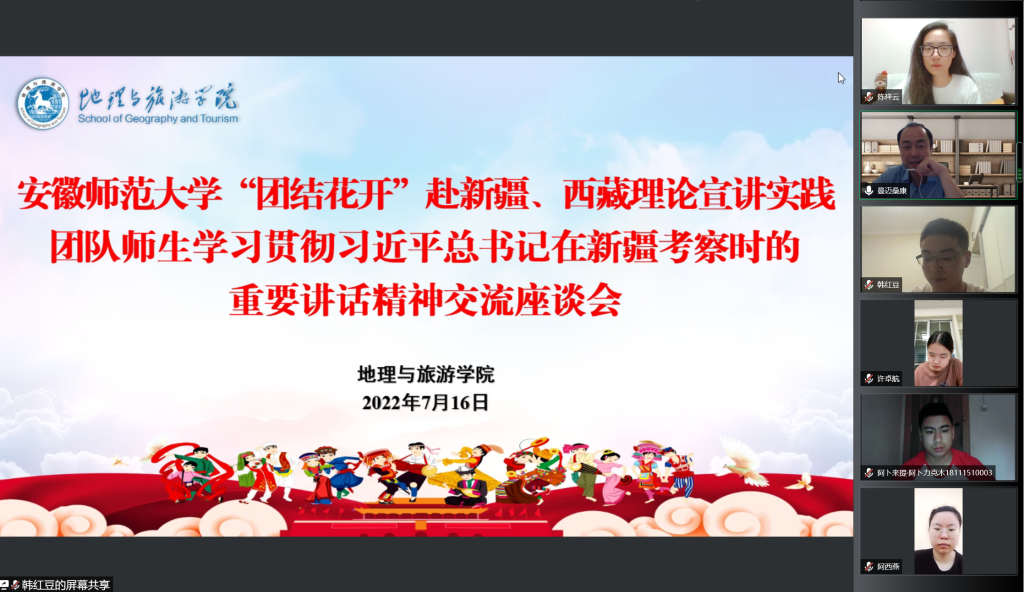 “团结花开”边疆少数民族学子赴新疆、西藏理论宣讲实践团队的师生,通过线上开展学习贯彻习近平总书记在新疆考察时的重要讲话精神交流座谈会,色情动漫