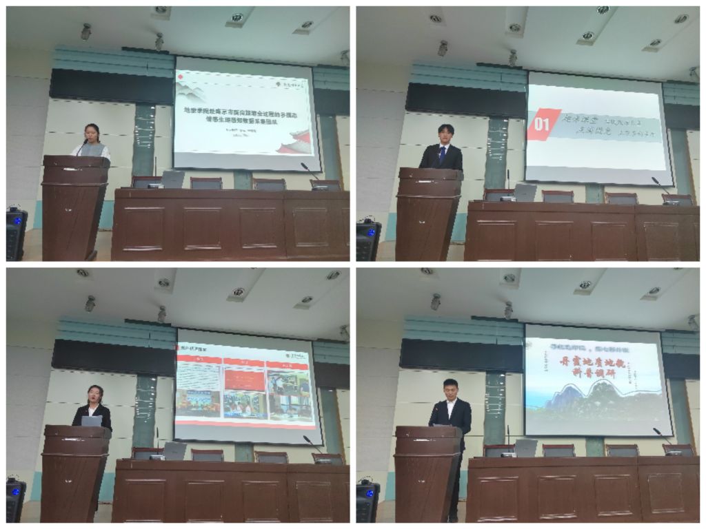 副院长汪文文,地理科学专业副教授方叶兵、城乡规划专业副教授王原、土地资源管理专业副教授沈非、地理科学专业讲师姜伟、旅游管理专业讲师洪学婷,辅导员韦银艳、吴文涵担任评委,各社会实践团队代表、各年级团支部代表到场聆听汇报。本次会议由姚兰主持,采取“线上+线下”的汇报方式。