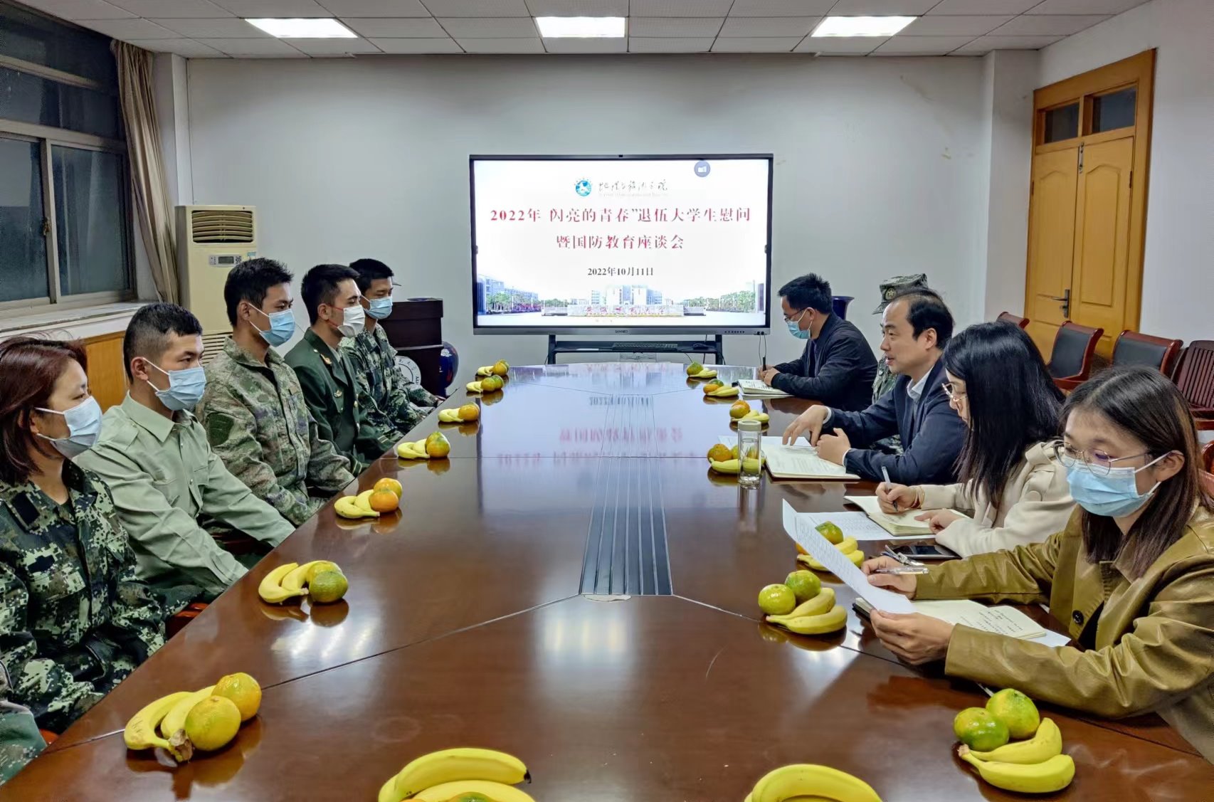 举办2022年“闪亮的青春”退伍大学生慰问暨国防教育座谈会。学院党委副书记乔静、本科生辅导员代表以及13名退伍复学本科生参加本次会议,会议由乔静主持。