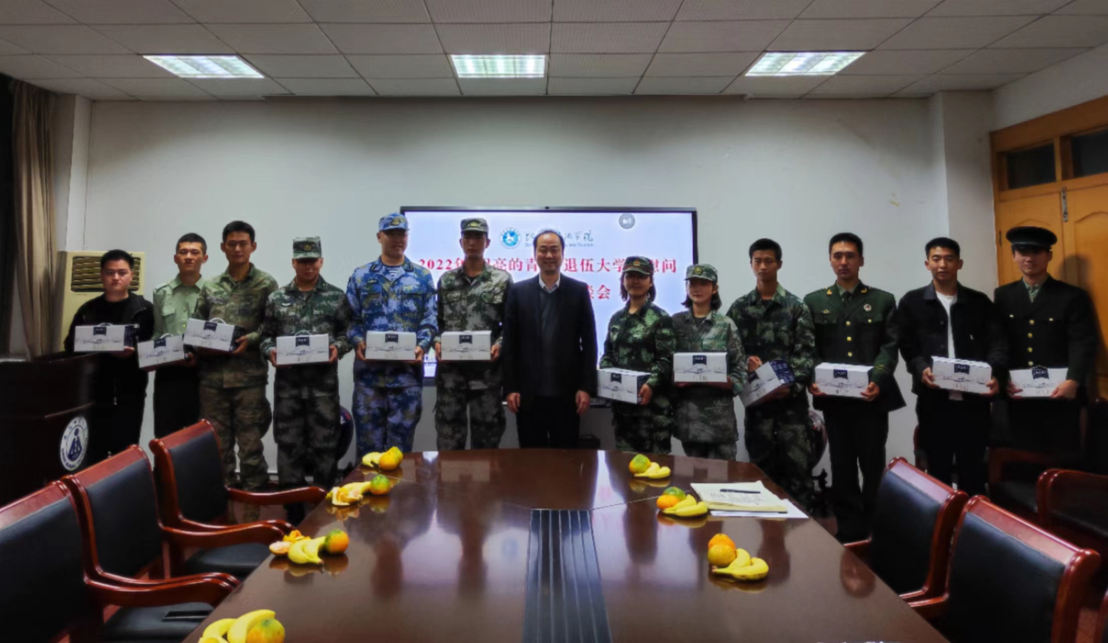 首先,退伍复学同学分别就在部队的收获与成长展开交流,纷纷表示部队服役两年的经历,既是对身体上的历练,也是对精神上的磨炼,同时更是思想政治觉悟的提升。接着,乔静代表学院对退伍复学的同学表示欢迎,对他们携笔从戎、保家卫国的人生选择表示肯定,称赞他们响应祖国召唤参军入伍,把爱国之心化为报国之行,为广大有志青年学子树立了新的榜样。乔静勉励他们在回到校园后要继续发扬艰苦奋斗、勇往直前的精神,刻苦努力学习,争当五育并举的青年表率。最后,乔静代表学院表达对退伍复学学生的关心和关怀,并发放慰问品。