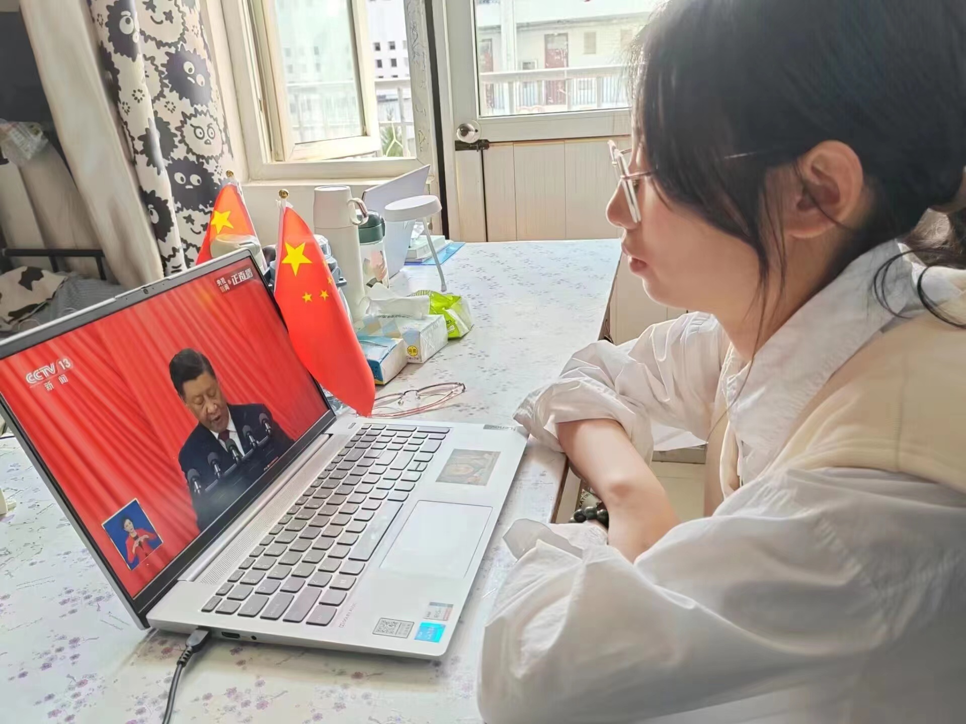 学生会主席团成员、2020级地理科学(师范专业)康傲:学习二十大,奋进新征程!习近平总书记在党的二十大报告中勉励我们广大青年要坚定不移听党话、跟党走,怀抱梦想又脚踏实地,敢想敢为又善作善成,立志做有理想、敢担当、能吃苦、肯奋斗的新时代好青年,让青春在全面建设社会主义现代化国家的火热实践中绽放绚丽之花。身为新时代青年学子,我们生逢其时,舞台广阔,前景光明,更有时代重任在肩。我一定牢记党和国家对青年的希望,不断提升思想认识、深化专业学习、锤炼真实本领,在实践中担当使命,为中华民族伟大复兴中国梦不懈奋斗!