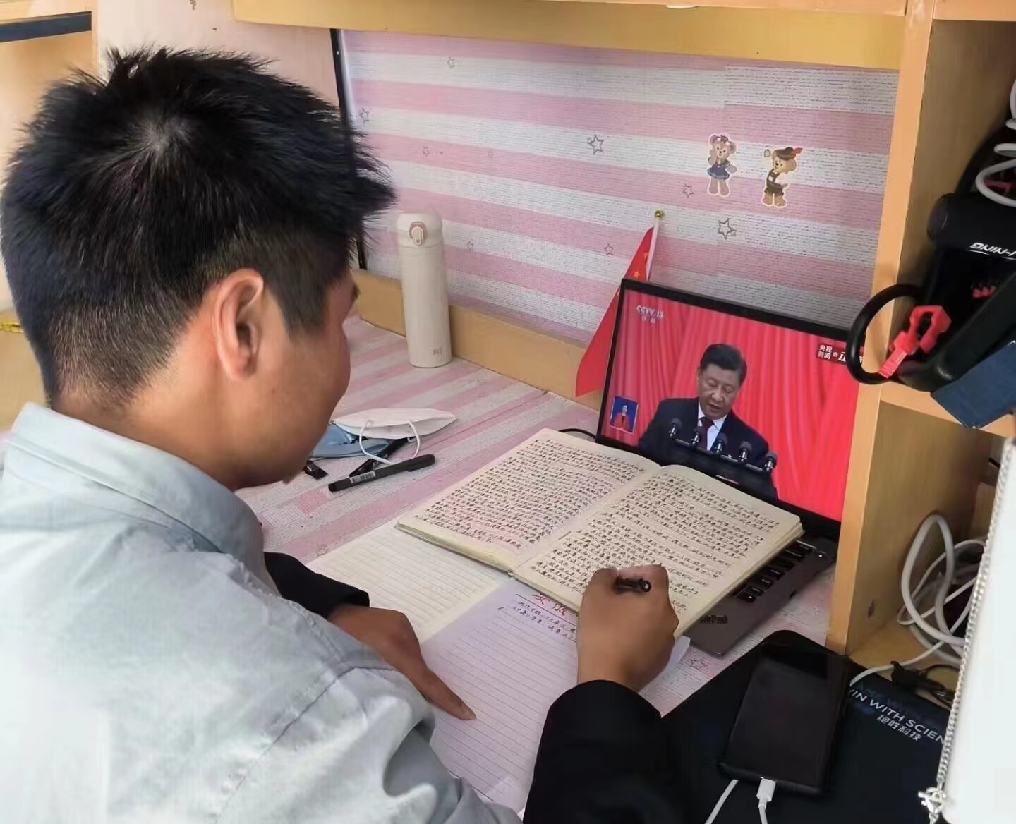 学校首位在校期间参军入伍的边疆地区维吾尔族本科生、“四有”优秀士兵、校第十八届“十佳大学生标兵”、2020级地理科学(师范)专业预备党员阿卜来提·阿卜力克木:习近平总书记强调:“全党同志务必不忘初心、牢记使命,务必谦虚谨慎、艰苦奋斗,务必敢于斗争、善于斗争,坚定历史自信,增强历史主动,谱写新时代中国特色社会主义更加绚丽的华章。”一百多年来,我们党不断团结带领全国各族人民在中国西部的土地上开辟出一片又一片沃土,创造出一个又一个奇迹。作为一名少数民族学生,我亲身经历中国共产党带领我和我的家乡走向了全面小康,时刻感恩在心;作为一名党员和一名退役军人,我一定不忘初心、牢记使命,继续发扬部队艰苦奋斗精神、好传统和好作风,努力学习文化知识,立志回报社会,报答党和国家的精心培养与照顾,为实现中华民族伟大复兴中国梦付出自己的一份力量。