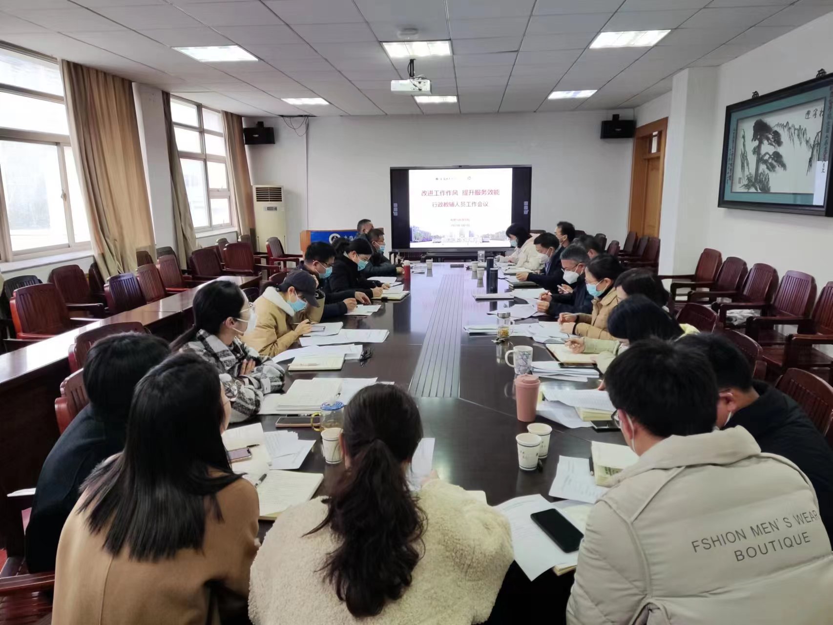 召开了“改进工作作风 提升服务效能”工作会议。学院领导班子成员、全体行政教辅人员参加会议。会议由学院行政副院长汪文文主持。