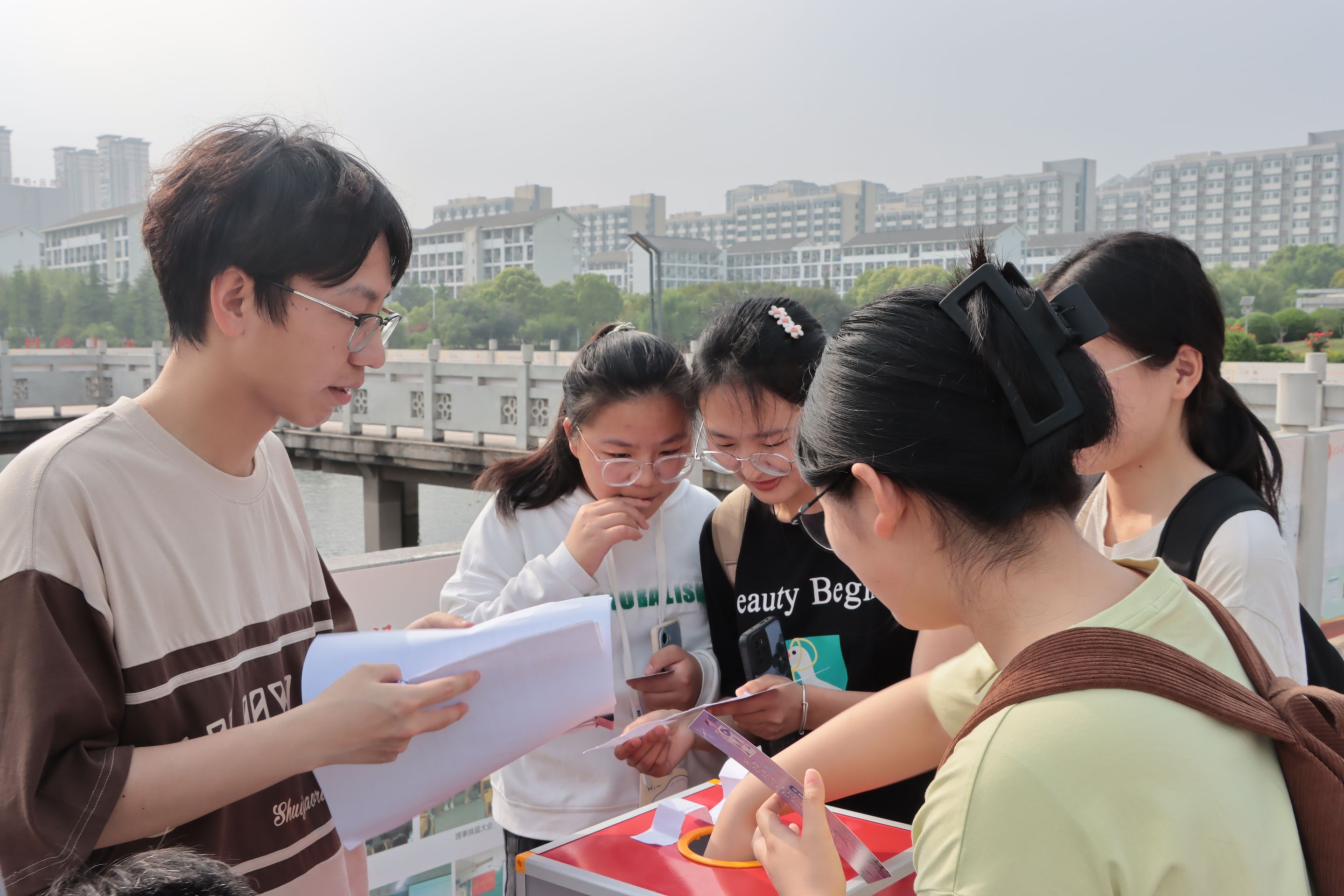 准备的奖品很用心,我和室友从九曲桥去图书馆,看到这个活动就来参加一下,没想到既学到了知识,又领取到定制的奖品,很惊喜!”2022级思政专业的一位同学说。