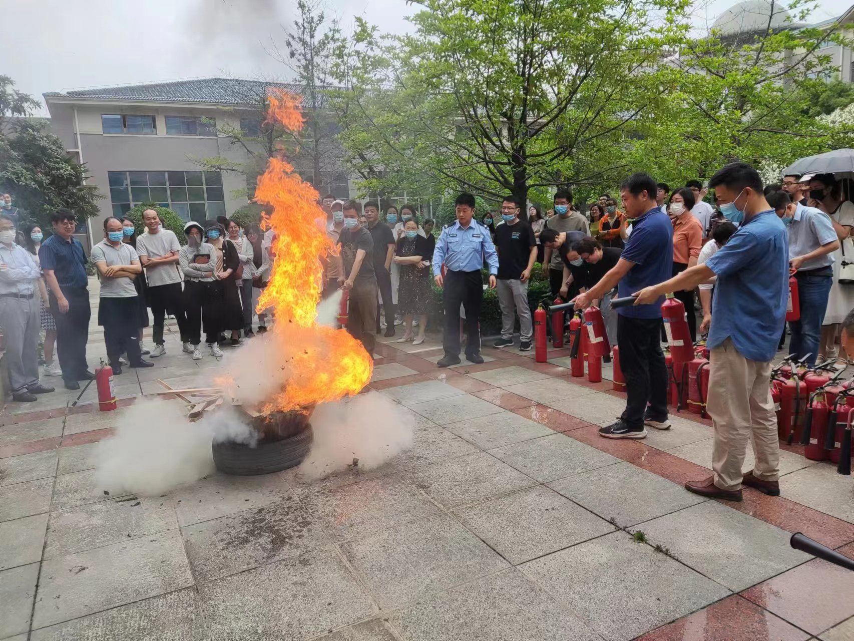 随后,校保卫处消防科孙栋老师采用“互动+体验”的方式为全体师生讲解了灭火器分类,以及在面对突发火灾时如何正确使用灭火器和自救逃生方法,重点强调处置火灾事故的注意事项及安全防范。最后,重点对灭火器使用的“提、拔、握、压”四字诀作了详细的分步解说,指导师生进行灭火实操,让师生直观体验灭火器的使用。此次培训让学院师生学习了学校安全生产管理办法,提升了扑救初期火灾和应变自救的能力,掌握了逃离火灾现场的基本方法,从根本上提高了安全生产意识,为创建平安校园奠定了坚实基础。