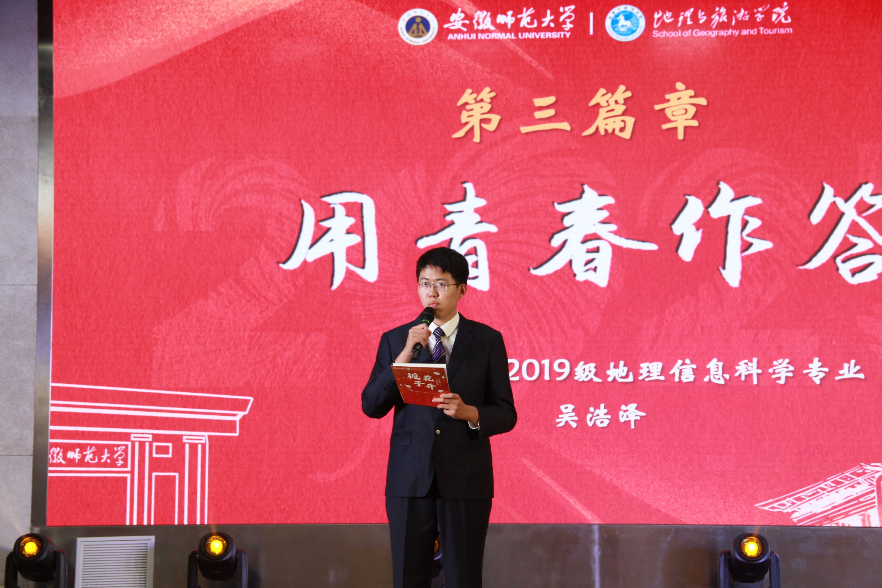 2019级旅游管理专业辅导员韩红豆总结了同学们四年学习生活的精彩美好,希望同学们做仰望星空、脚踏实地,明辨是非、理性思考,乐观豁达,勇于奋斗的地理人。