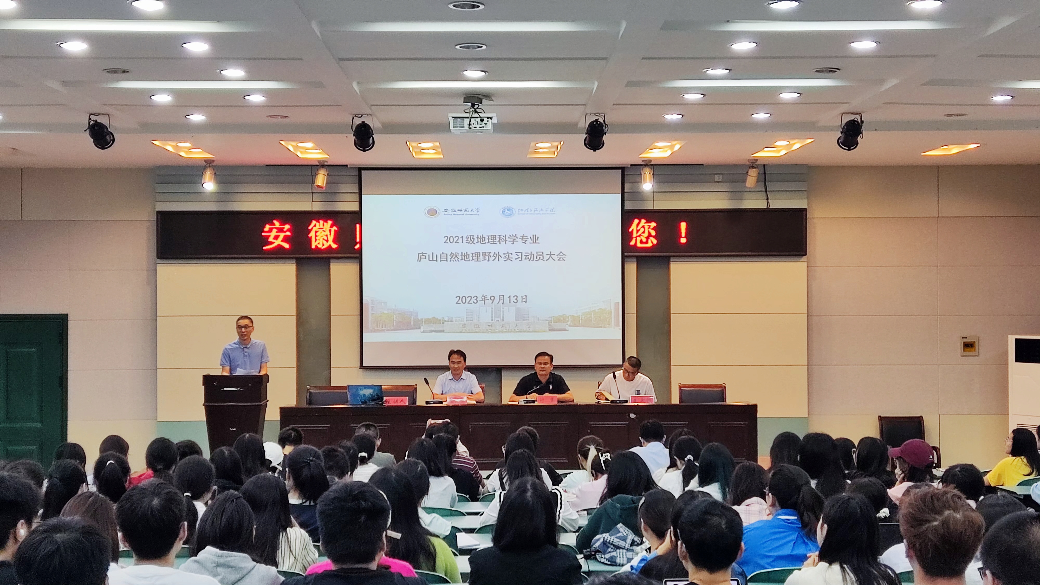 9月13日下午,21级地理科学(师范)专业在学院101报告厅召开庐山自然地理野外实习动员大会,学院党委副书记付勇、副院长杨兴柱、地理科学专业负责人朱永恒、实习指导老师以及21级地理科学(师范)专业全体学生参会,会议由实习负责人胡春生主持。与会领导老师,分别从实习的目的和意义、实习安全和注意事项等,对同学们进行了出发前的指导,并提出相关要求和目标,希望同学们能够珍惜实习机会,树牢安全意识、展现师大学子求学创新、坚韧不拔的良好形象,争做品学兼优的地理人,并预祝圆满完成实习任务。