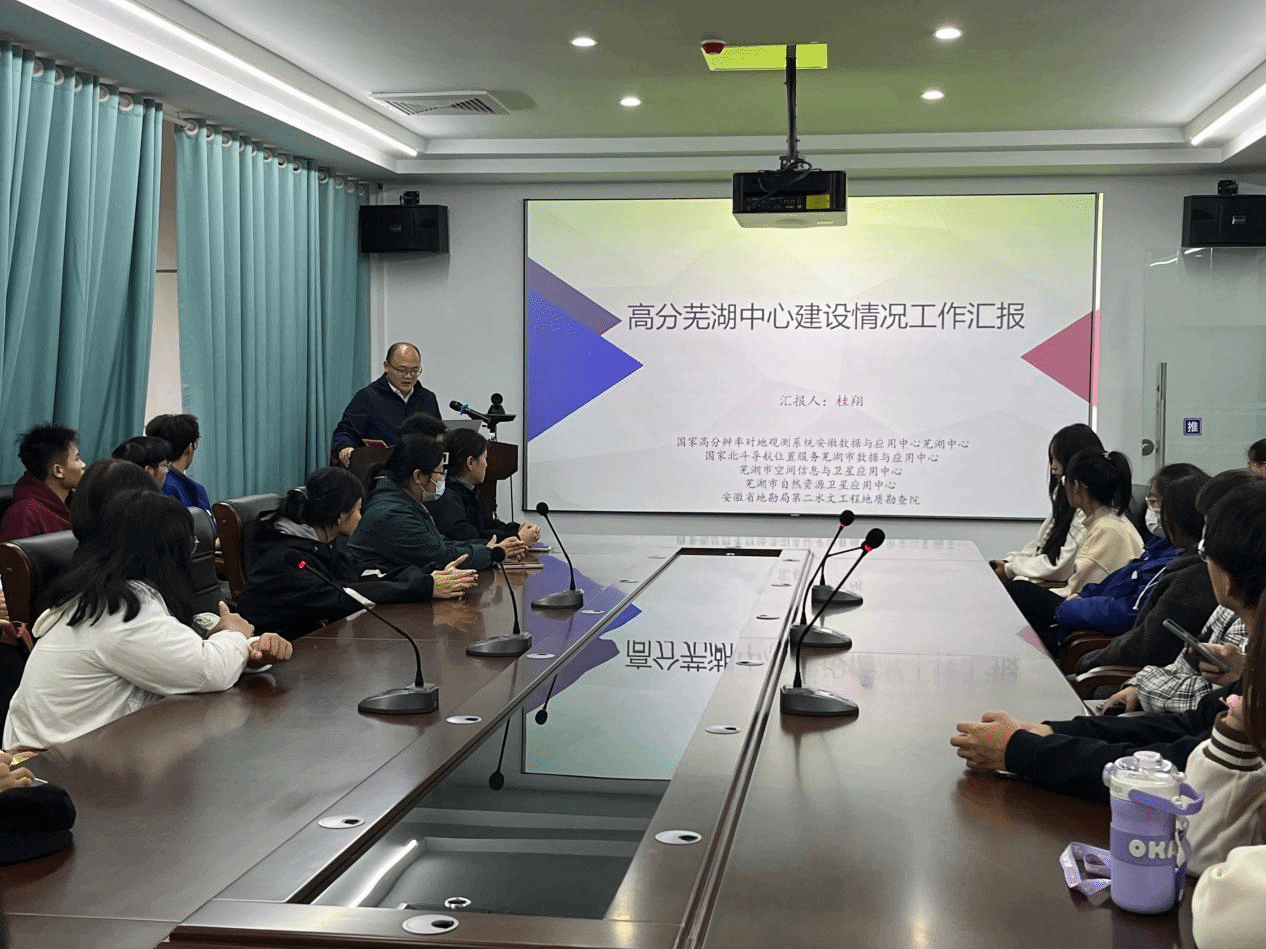 随后,中心桂翔主任在三楼会议室开展专业认知讲座,介绍了近年来中心在土地管理方面的实践工作,并给大家展示了先进的芜湖信息数据采集和管理平台。讲座后,师生们进行了座谈交流。
