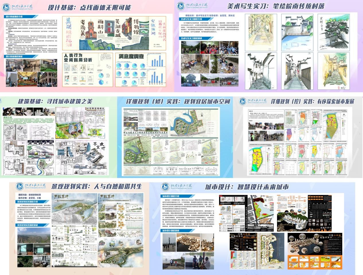 其中,设计基础课程的外部空间体验分析课题,通过实地参观体验和具体分析,训练学生的外部空间感知能力、速写能力和评价能力,初步了解并认识空间分析的简单方法步骤;景观规划实践课程着重将景观规划设计的基本理论和各类绿地规划设计的理论应用到实践中去,通过系统的学习使学生掌握城市景观规划理论的运用、相关国家标准与规定;详细规划(修)实践、详细规划(控)实践、城市设计等实践课程作品则更加贴近实际,涉及到城市设计、土地利用、交通规划、控制指标等多个方面的综合问题,考察了同学们的专业知识素养和制图能力。