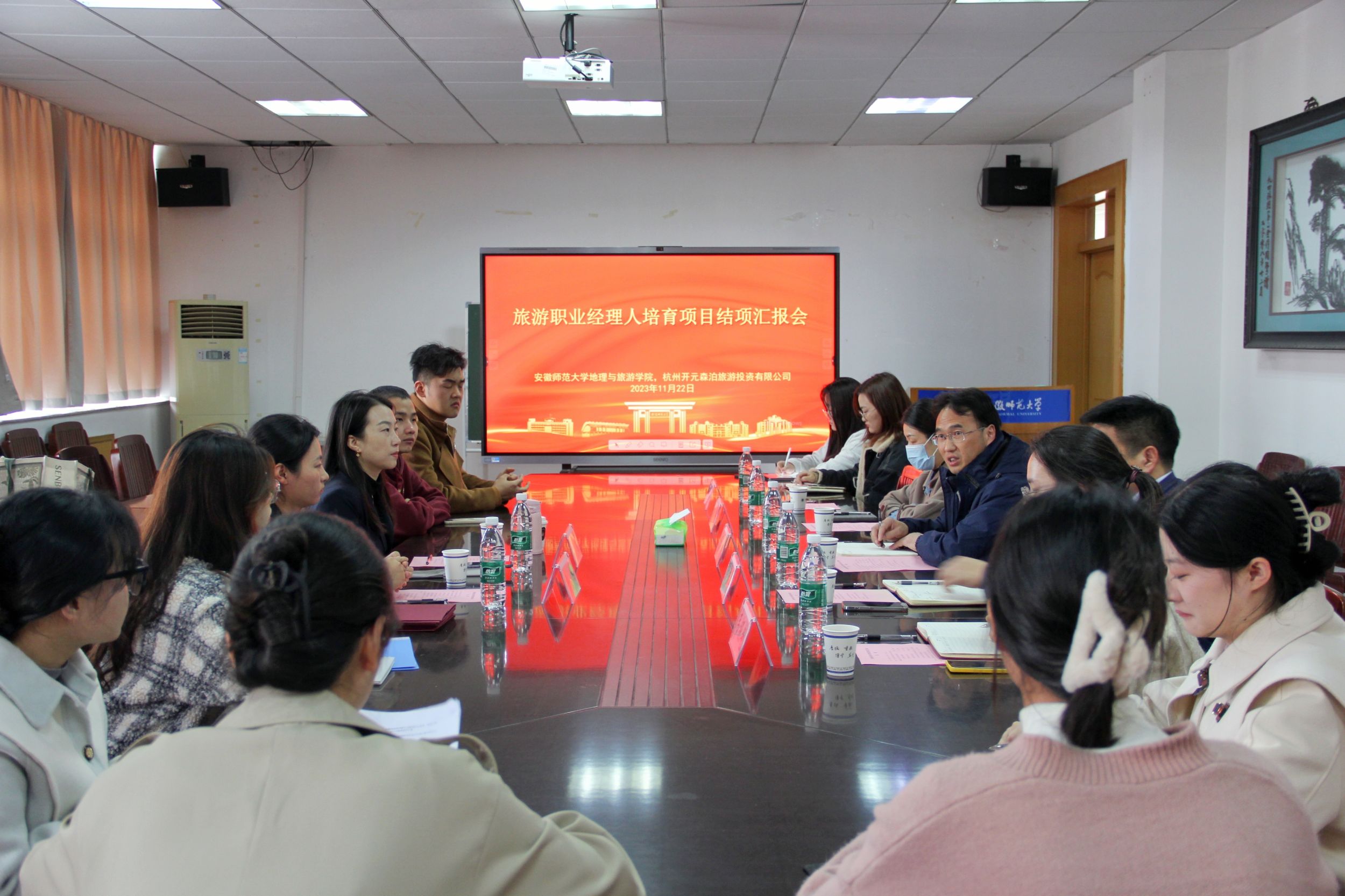 与杭州开元森泊旅游投资有限公司在学院行政楼三楼会议室举办首届旅游职业经理人培育项目结项汇报会。杭州开元森泊管理公司总经理助理兼人资总监陈静总监、森泊管理公司招聘经理吴燕、色情动漫