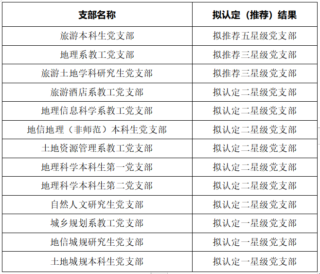 根据《关于做好学校2023年星级党支部认定工作的通知》(校组织部〔2023〕7号)等文件精神和要求,在坚持公开、公正、公平原则的基础上,通过党支部自评申报、院级党组织初评等程序,现确定学院2023年星级党支部初评拟认定(推荐)名单。现公示如下: