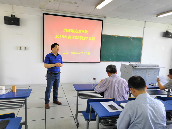 在院实验楼201教室举行了青年教师教学竞赛。全院共有5名青年教师参加比赛,邀请焦华富、程久苗、吕成文、蔡善柱等不同学科的专家担任评委,比赛由教学院长曹卫东主持。