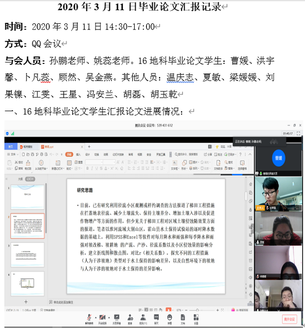积极应对,按照教育部和学校要求,通过多种在线教学方式,为学生线上课堂教学和指导学生毕业论文(设计),让身处五湖四海的地旅学子相聚“云”课堂,实现了“停课不停教、停课不停学”。