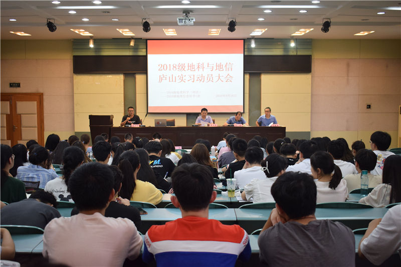 本网讯(罗文菁 尹仟仟)9月16日下午,在学院实验楼101教室,2018级地理科学(师范)专业与地理信息科学专业举行了庐山自然地理联合实习动员大会。院领导曹卫东、乔静,指导教师、辅导员及全体实习生参加了动员会,会议由地理系主任朱永恒教授主持。
