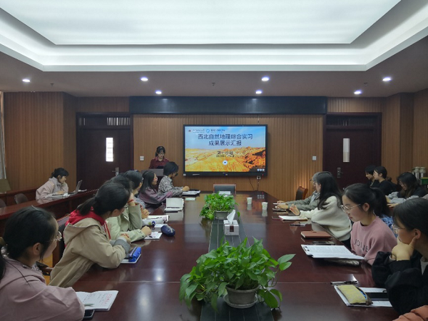 2018级地理科学(非师范)专业西北自然地理野外实习交流座谈会暨成果展示汇报会在花津校区礼勤楼702会议室举行。学院教学副院长曹卫东、实习指导老师程先富、杨立辉,辅导员张慧及2018级地理科学(非师范)专业全体同学参加此次会议。