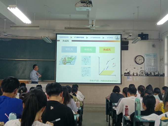 校教师智慧教学大赛三等奖获得者徐光来副教授讲授《气象学与气候学》课程相关内容。校院督导团(组)成员、学院领导班子及部分教师参加本次观摩活动。
