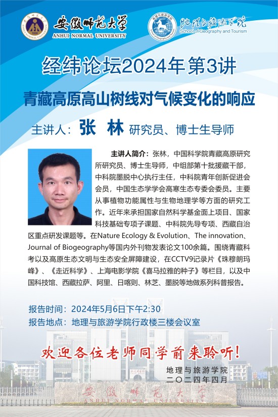 【学术预告】经纬论坛第35讲:青藏高原高山树线对气候变化的响应