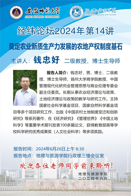 【学术预告】经纬论坛第46讲:奠定农业新质生产力发展的农地产权制度基石