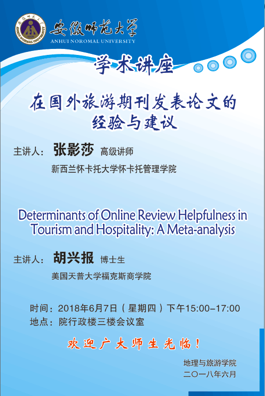 学术报告:在国外旅游期刊发表论文的经验与建议等