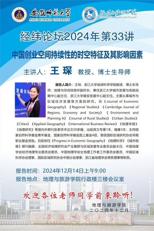 【学术预告】经纬论坛第65讲:中国创业空间持续性的时空特征及其影响因素
