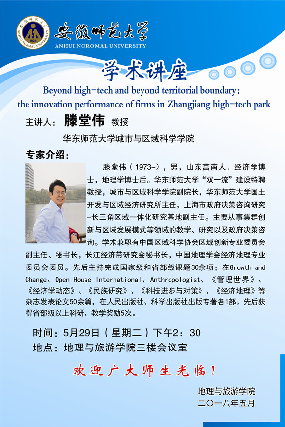 学术报告:Beyond high-tech and beyond territorial boundary : the innovation performance of firms in Zhangjiang high-tech park