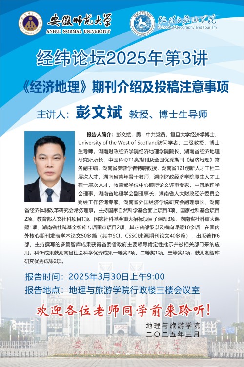 【学术预告】经纬论坛第69讲:《经济地理》期刊介绍及投稿注意事项
